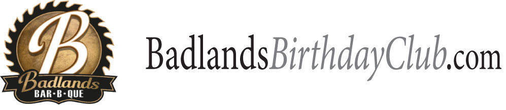 As a Birthday Club member you will receive an email on your birthday announcing a special surprise. Just present the email at Badlands Bar-B-Que to enjoy your birthday surprise.